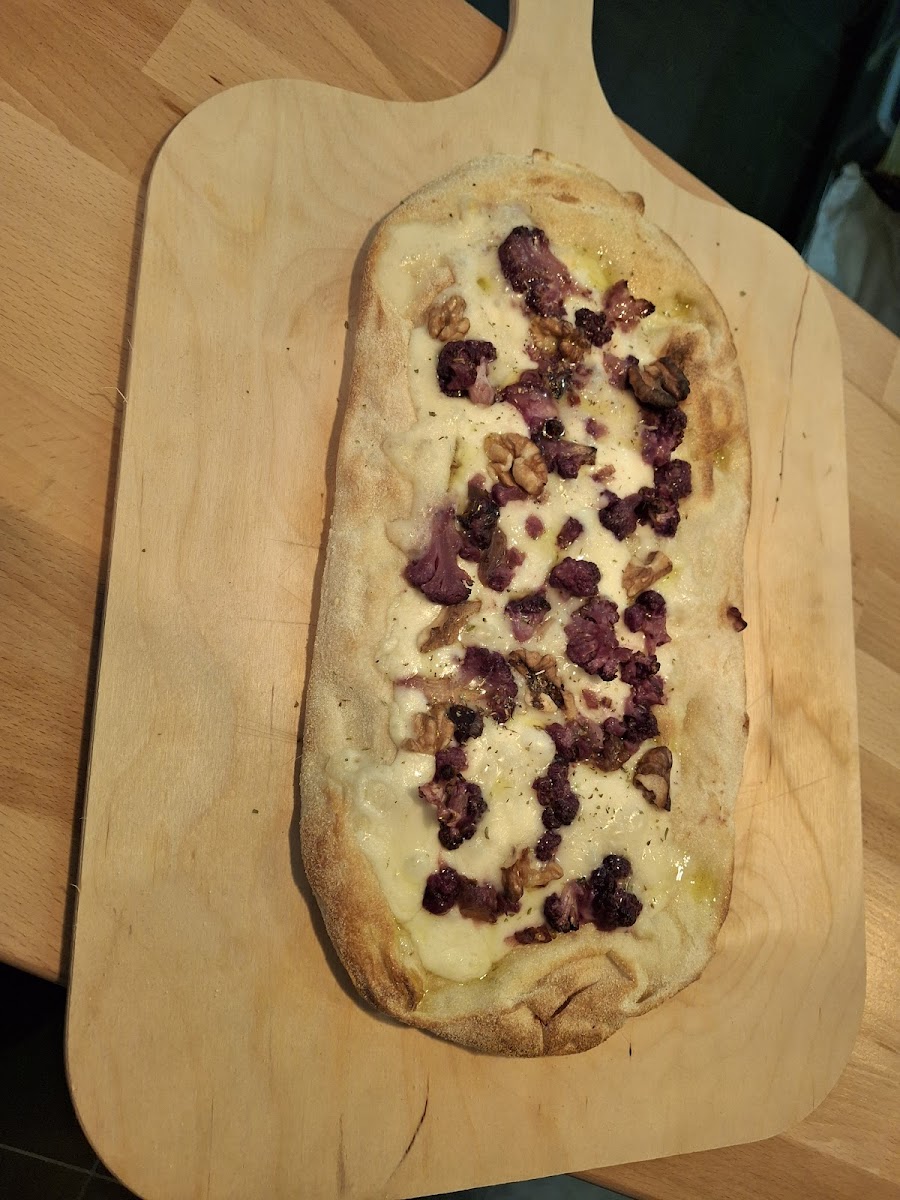 Provolone DOP, Mozzarella Fior di Latte, Fenchel-Salsiccia, Kirschtomaten, frisches Basilikum, schwarzer Pfeffer